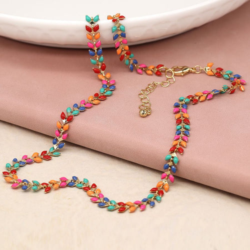 Golden Multicoloured Leaf Drop Necklace