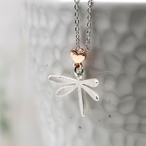 Silver plated dragonfly necklace with heart