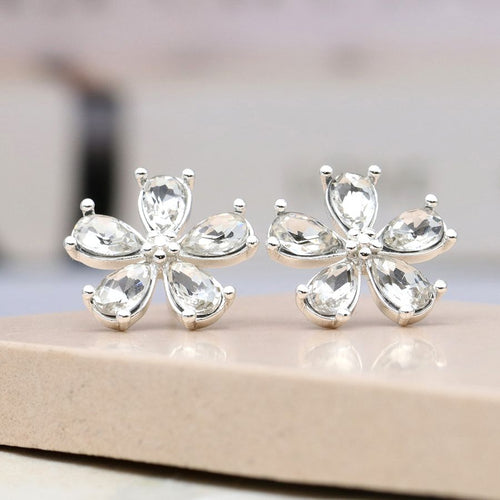 Silver plated crystal flower earrings