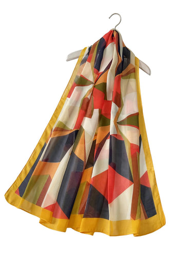 80s Abstract Geo Print Chiffon Scarf