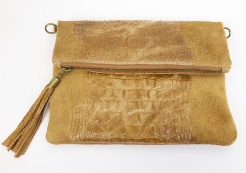 Leather Suede Croc Clutch