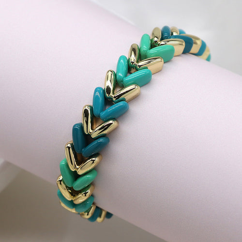 Aqua/Pink /Gold Faceted Bead Bracelet