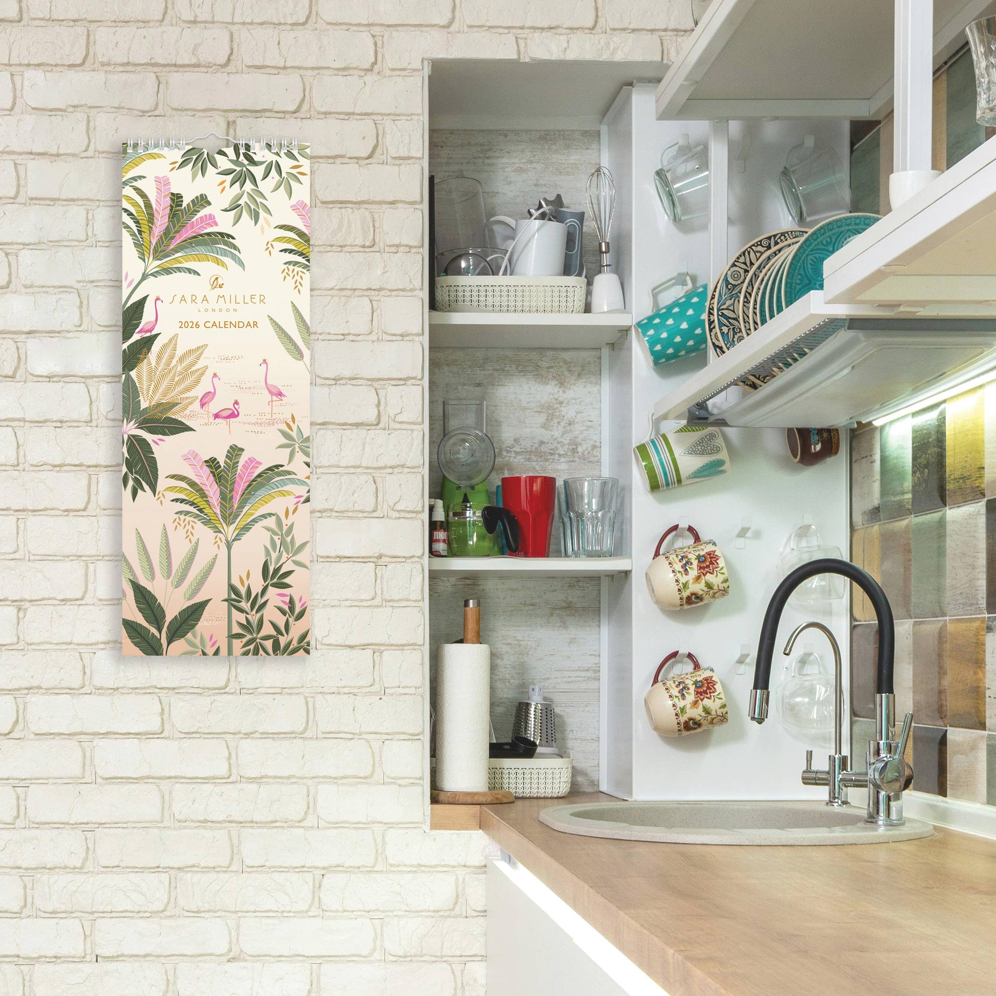 2026 Sara Miller Slim Calendar from Portico Designs Ltd. Beautful artwork from luxury lifestyle brand Sara Miller London, featuring distinctive prints from the Haveli Garden range. With foil finished cover. Month to View Layout. Each month includes notes section and next month planner. Includes 2026 and 2027 planners plus list of holidays and important dates.