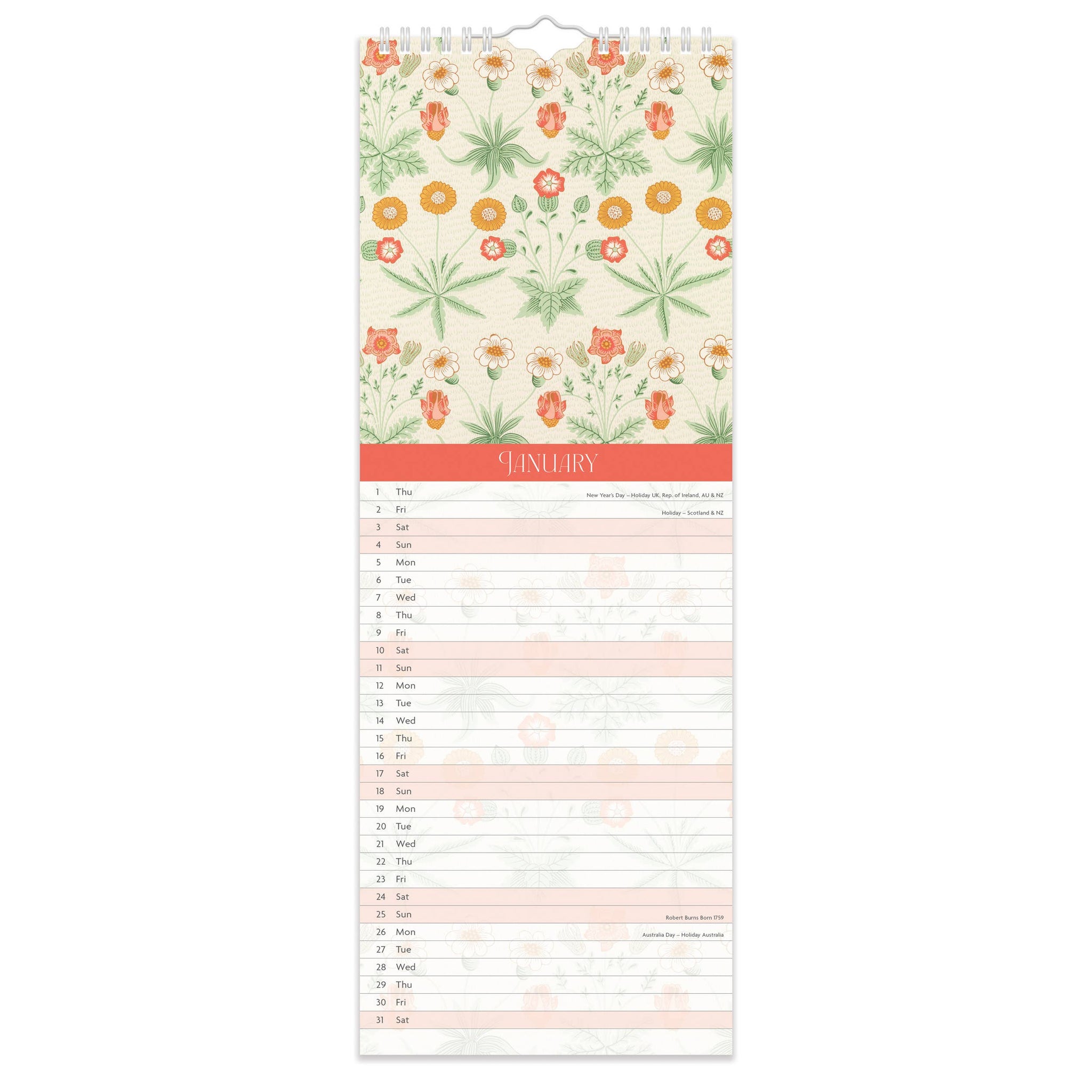 2026 William Morris Slim Wall Calendar from Portico Designs Ltd, A renowned British brand embodying the timeless elegance of Arts and Crafts design. Historic designs dating back to the 19th century.