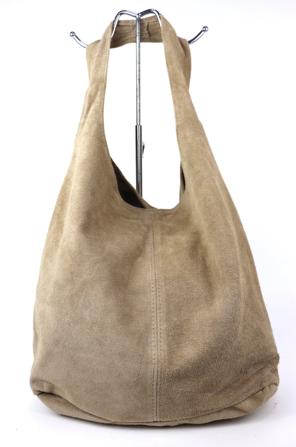 Large suede tote bag with spacious interior, providing ample room to organise your essentials with ease. Features a magnetic closure and a detachable zipper pouch on a stylish chain.
