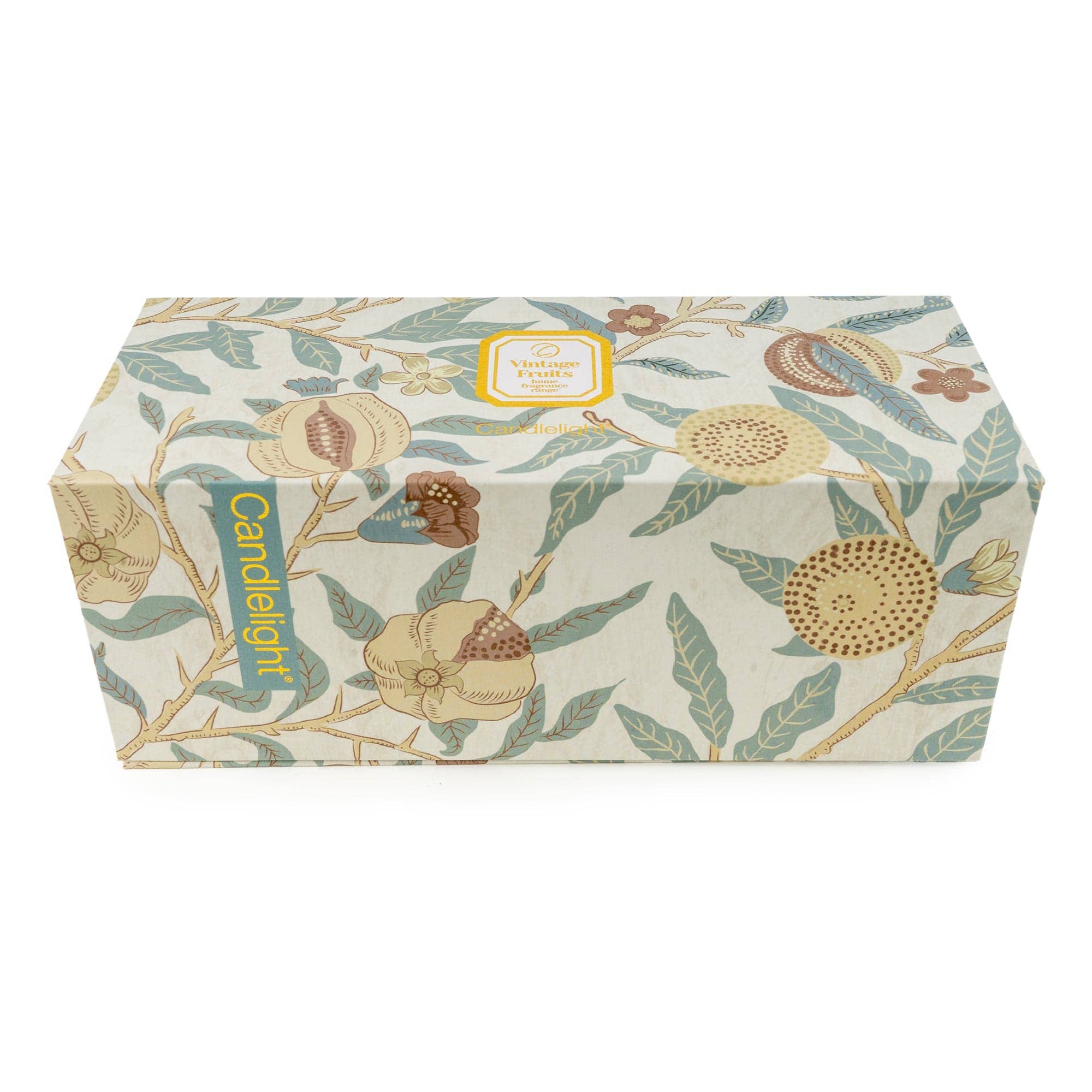 The Set of 2 Candles Vintage Fruits features a pair of beautifully designed, scented candles presented in elegant glass holders. The candles are adorned with a vintage-inspired fruit motif, showcasing soft lemon hues and delicate foliage, evoking a timeless charm. Their subtle, refreshing fragrance enhances any space, making them perfect for adding a touch of elegance to your home or as a thoughtful gift. These candles are packaged in a stunning box that reflects the sophisticated design, ideal for those who appreciate both style and aroma in their décor.