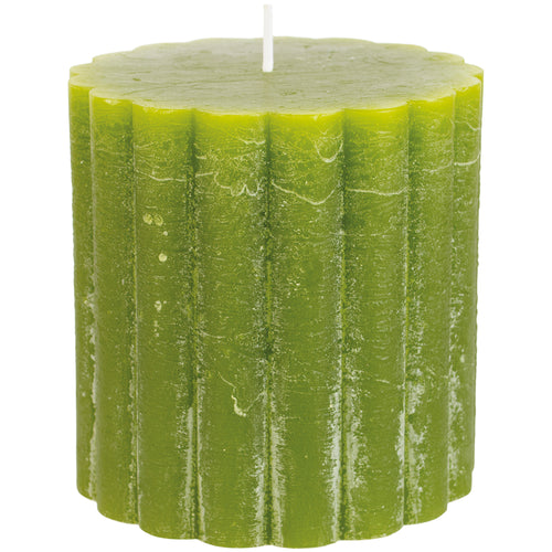 Rustic Scalloped Pillar Candle Fern Green 70x75mm
