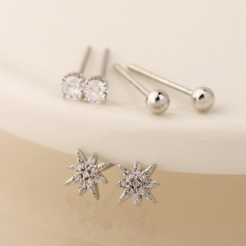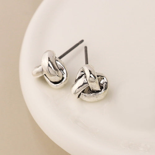 Silver plated and faux gold worn finish small and large hammered shape earrings