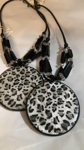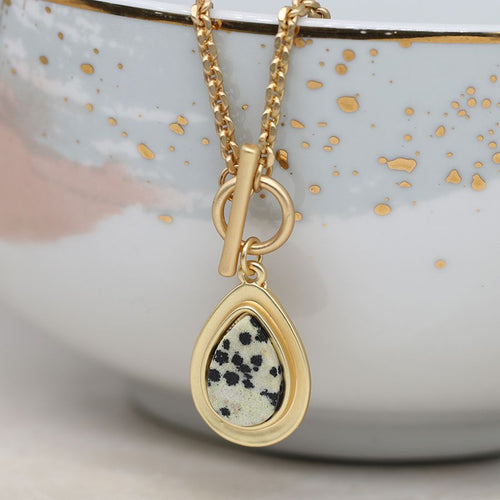 Matt gold Dalmation Jasper teardrop t-bar necklace