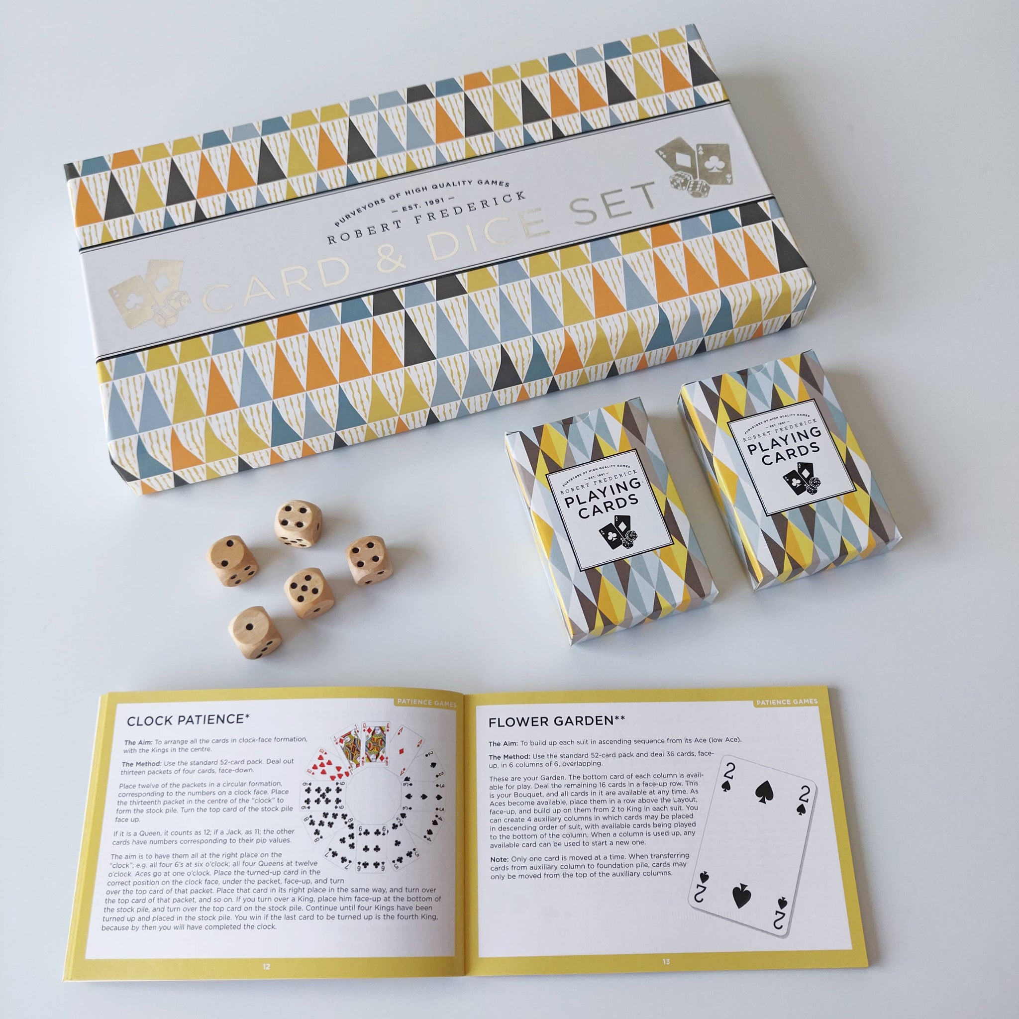 Playing cards and dice are a perfect addition to any games night. With so many different games to play there is something for everyone. Presented in a stylish and sturdy box this set will make the perfect gift. Includes - 2 packs of playing cards, 5 wooden dice and instructions.