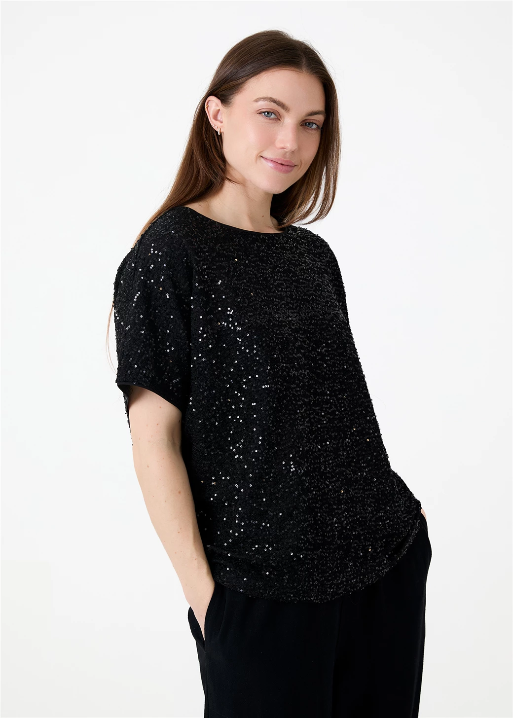 Shine bright in our Sequin Jersey Batwing Top. Cut with fluid batwing sleeves and a relaxed shape, it drapes beautifully while the soft stretch jersey keeps it comfortable all night long. It's perfect for last-minute plans, party nights, or when you just want to feel a little extra glam.
