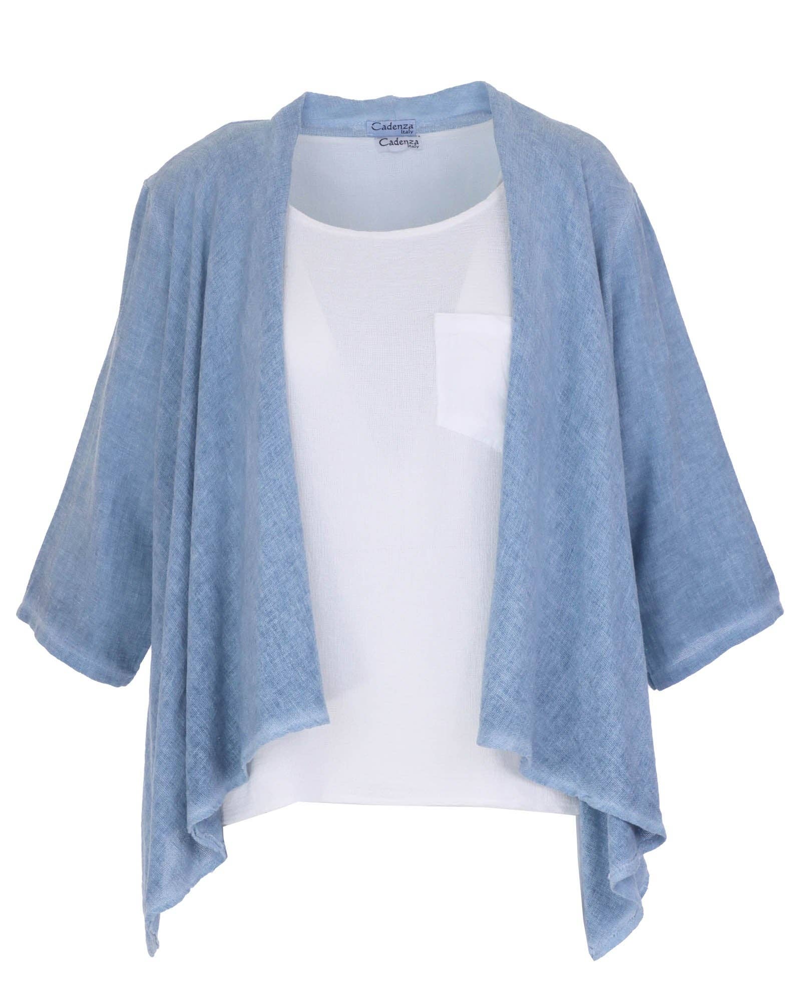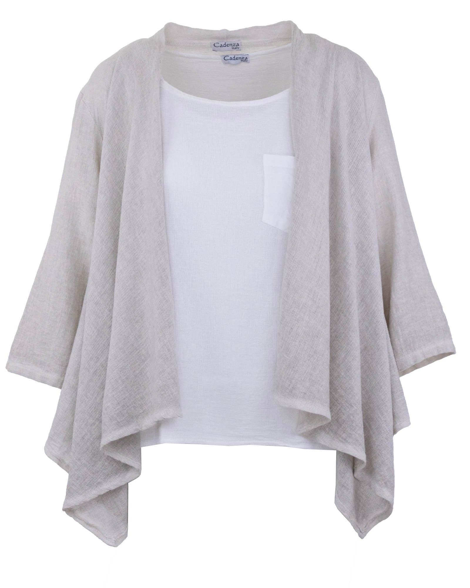 This is the perfect layering piece! A light- weight linen and cotton blend jacket with a waterfall front, making it slightly longer at the front than the back, this piece adds movement as well as a layer to an outfit.
