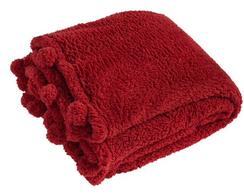 Cosy pom pom throw - red
