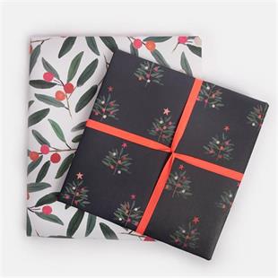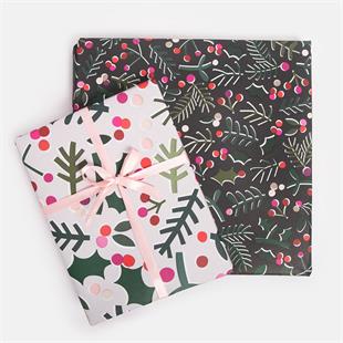 Graphic Foliage & Holly Double Sided Flat Wrap